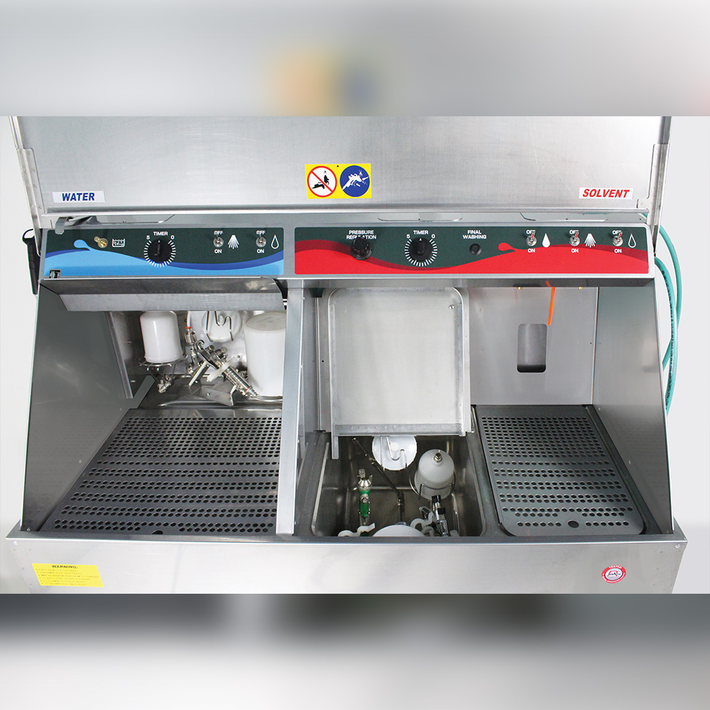 • Kombiniert manuelles Waschen von wasserbasiertem Lack und lösungsmittelbasiertem Lack