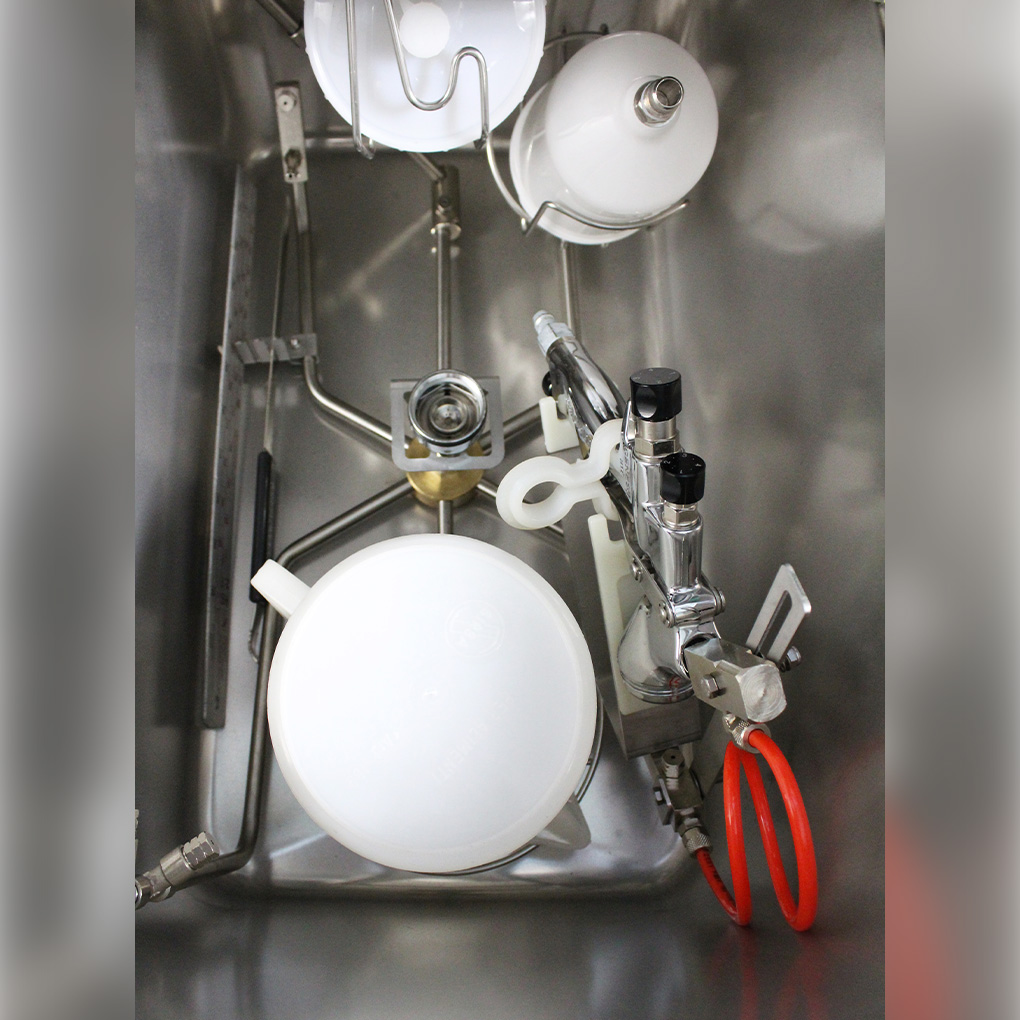 • Venturi-Pumpe zur Ansaugung des sauberen Lösungsmittels