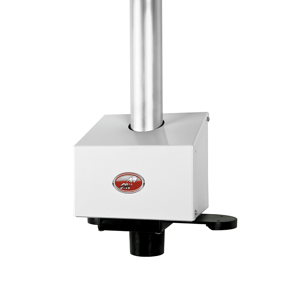 Einfaches und funktionelles Wandterminal. Der Anschluss für einen Absaugschlauch ist mit einer Klappensteuerung (Microswitch) ausgestattet. Sobald die Klappe geöffnet wird, startet die Absaugturbine.